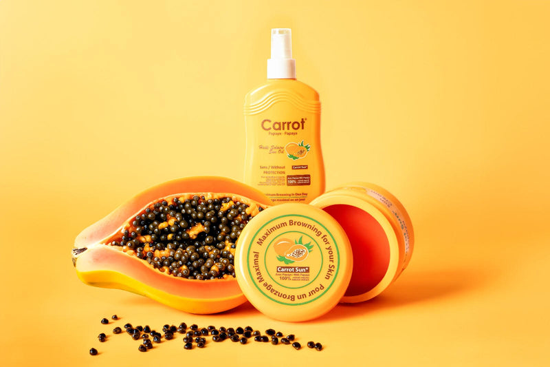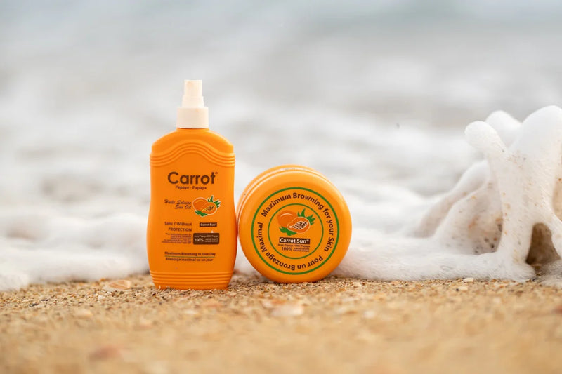 For a deeply moisturizing experience, try Carrot Sun® Gold or Tropical Fruit Tan Accelerating Creams. These creams contain L-Tyrosine, a natural ingredient known to support the tanning process, along with almond oil rich in vitamin E and wheat germ oil, which provides essential fatty acids for soft, nourished skin. Perfect for enhancing your tan while keeping your skin hydrated and healthy.