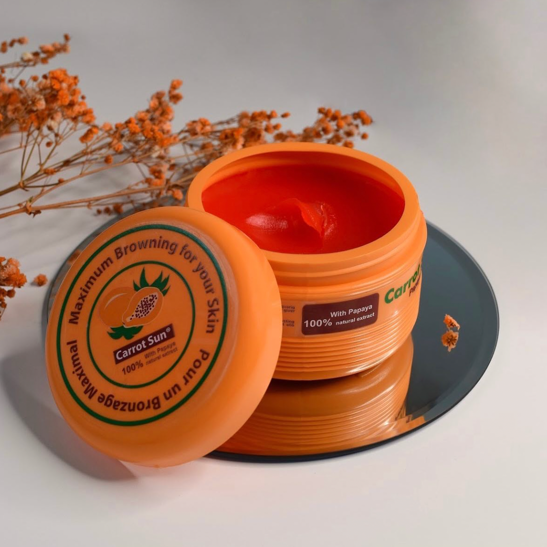 Carrot Sun® Carrot Tan Accelerating Cream is our original formula, specially designed to help enhance your tanning process. This cream works effectively to give you a deep, dark tan, whether you’re in the sun or using a sunbed. Its fast-acting formula ensures you can achieve a rich tan in less time, while keeping your skin moisturized and radiant.